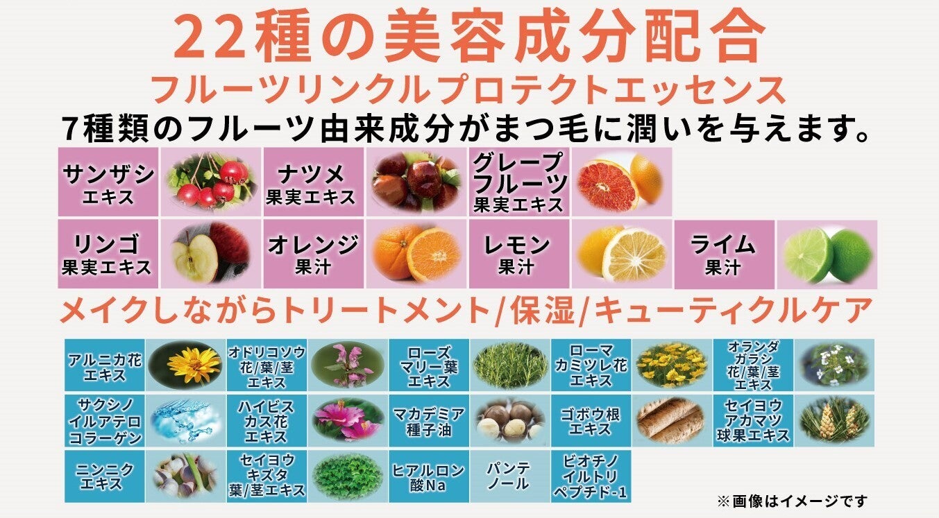 22種類の美容成分配合。メイクをしながらまつ毛を保湿。