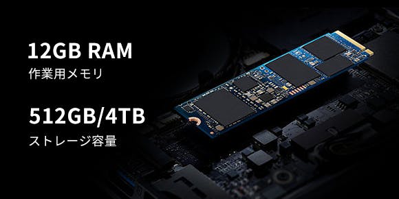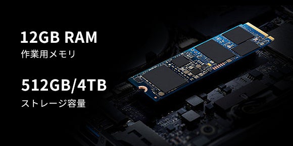 また、12GBメモリ、512GB SSD(4TBも選択可能)、Windows 11 Proを搭載。HDMI映像出力ポート、LANポートを備えており、ビジネス・プライベート問わずさまざまなシーンに対応できます。