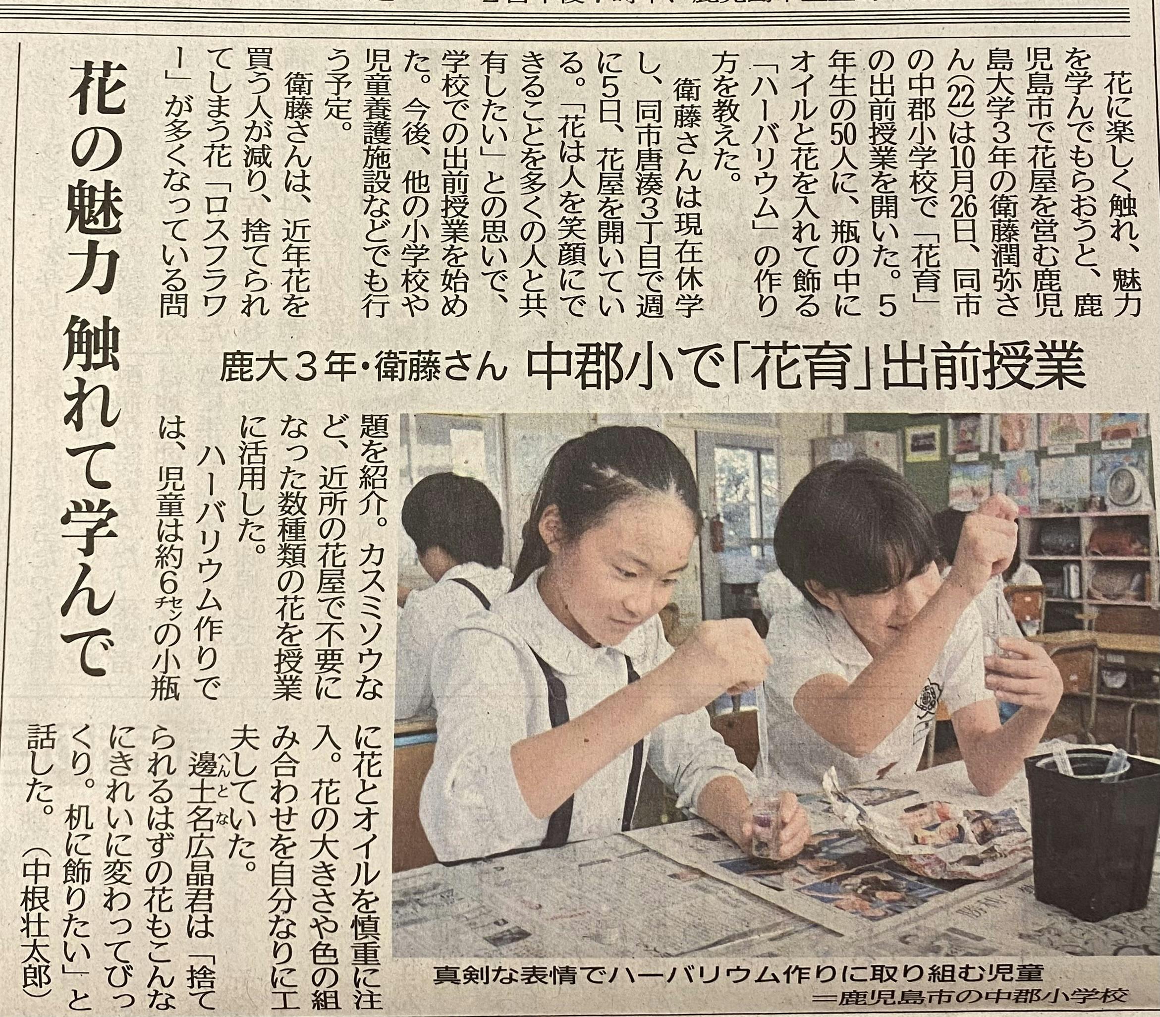 鹿児島県のお花に関するクイズや、ロスフラワーを活用したミニハーバリウム作りを行いました。