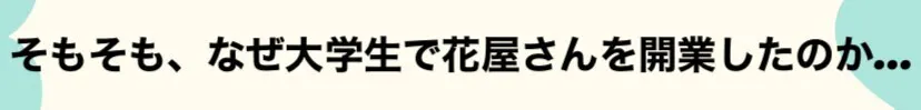 そこで、22歳の学生である私が花屋を開くことによって、少しでもそういったイメージを払拭し、10代20代と同世代という親近感もあり、気軽に花屋さんへ行くきっかけを作れるのではないかと思い、大学生のうちに開業しました。