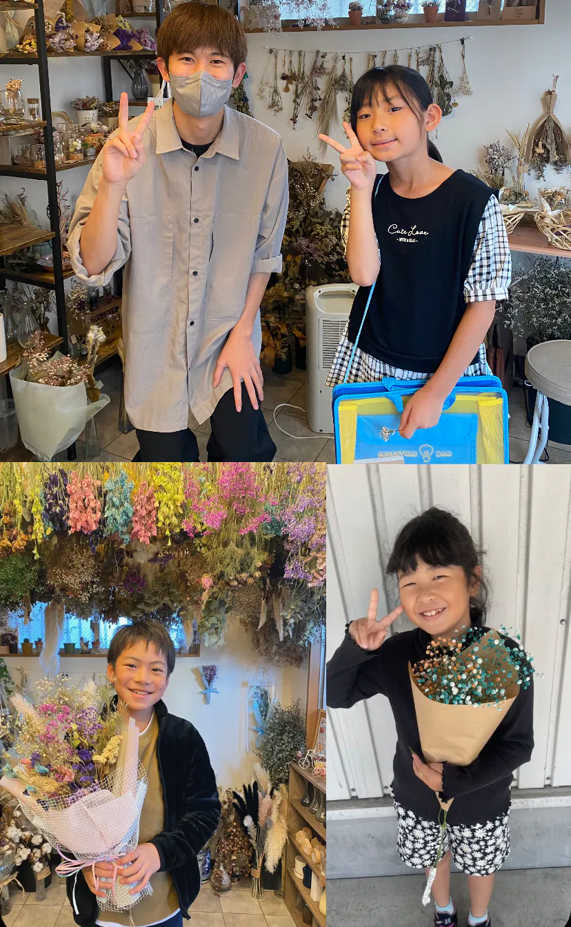 (2024年2月)2023年4月から1年間大学を休学し、2023年6月鹿児島市にて「お花のあるくらし」という小さな花屋を1人で開業いたしました。気軽に立ち寄れる花屋さんを目指して、生花や手作りのドライフラワー雑貨等を可能な限り低価格で販売しております。
