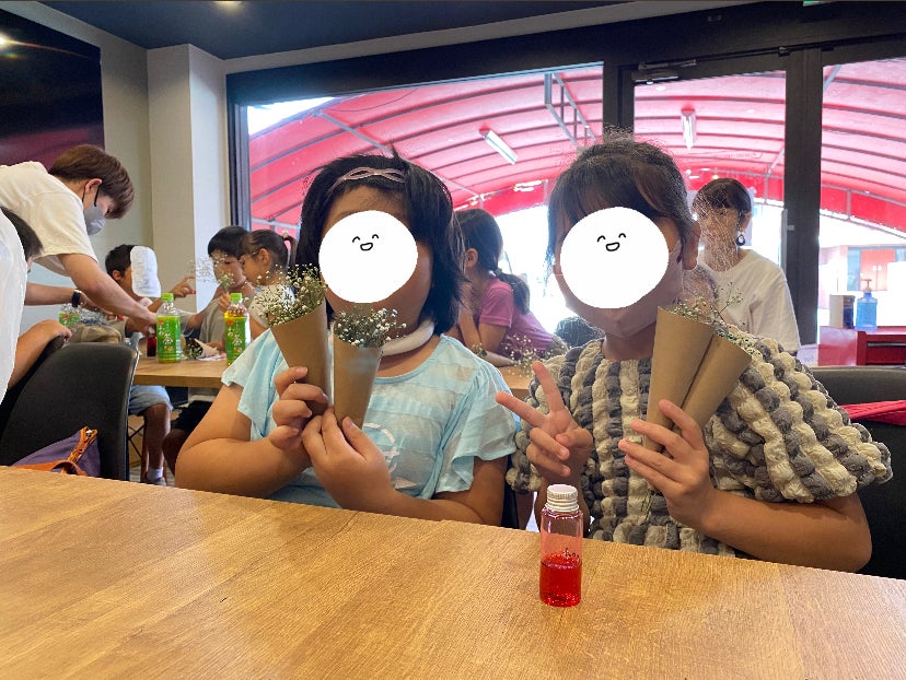 同じく子ども食堂のスペースをお借りし、小学生約15名と「夏休みの自由研究に役立つカスミソウの染色実験」を実施。