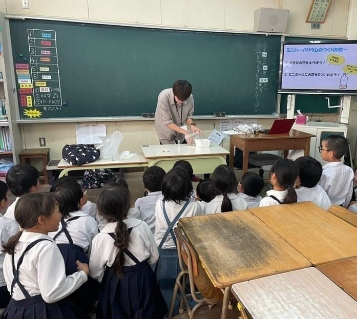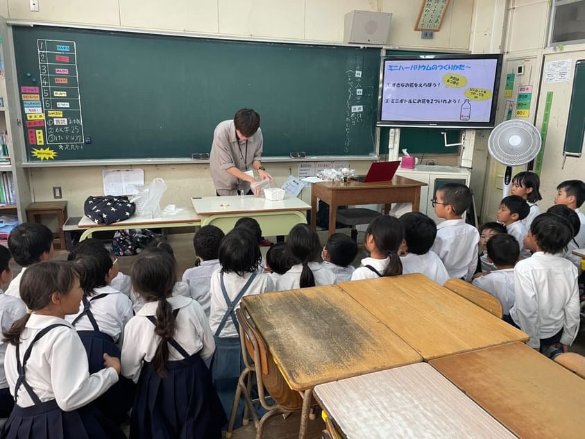 鹿児島県のお花に関するクイズや、ロスフラワーを活用したミニハーバリウム作りを行いました。