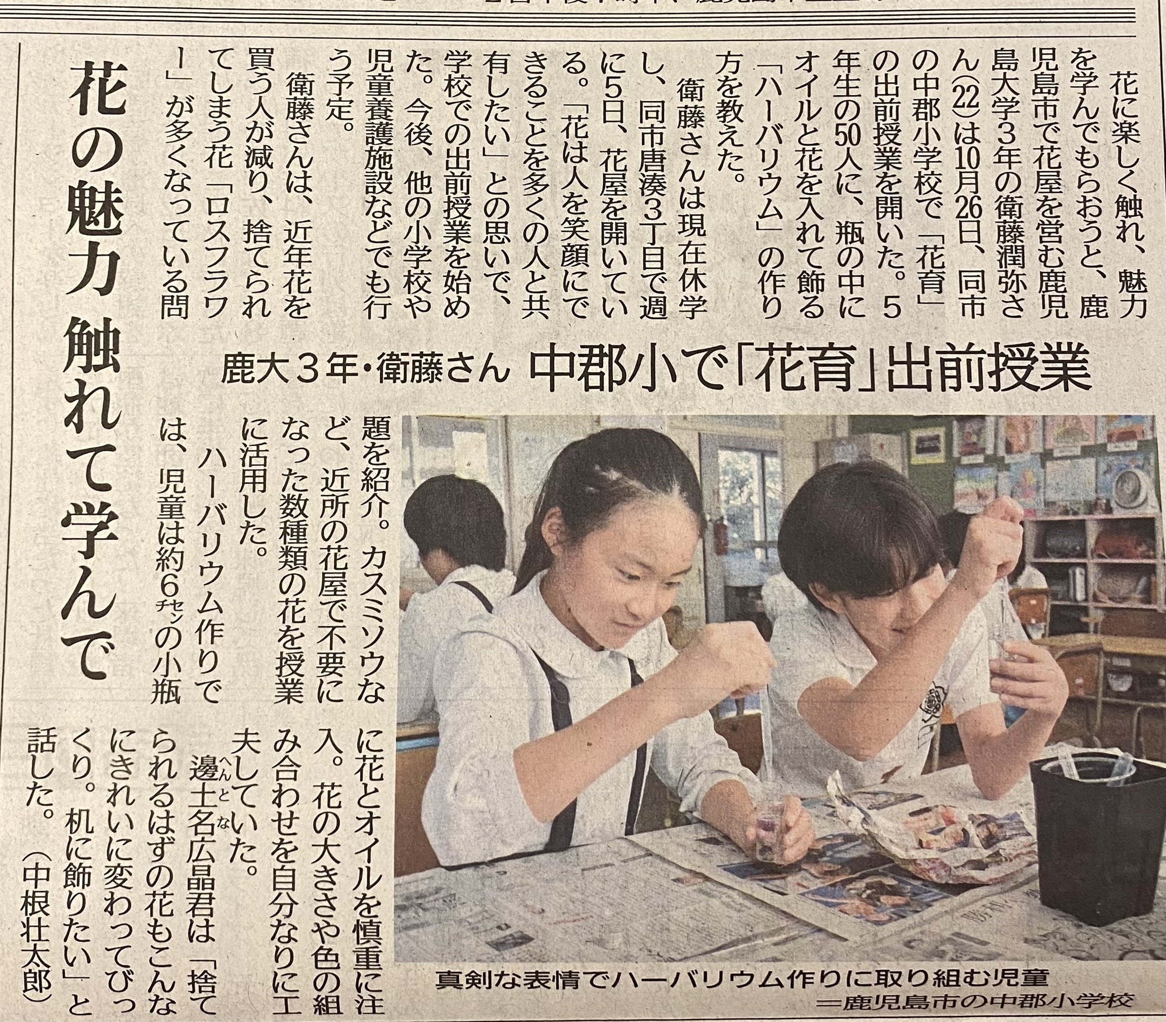 南日本新聞「花は人を笑顔にする」2023年6月