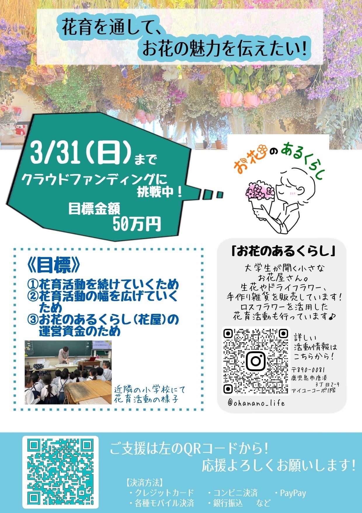 そんな花育活動を継続するため、今回クラウドファンディングに募らせていただきました。