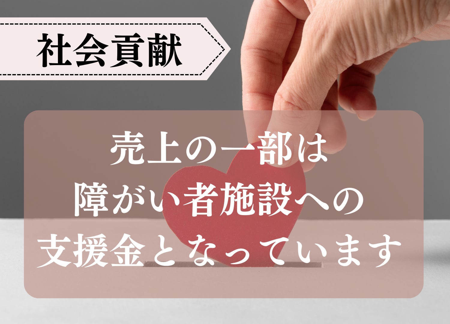 さらに売上の一部は、障がい者施設への支援金にあてさせていただいております。私たちの心身を健やかに育みながら、社会貢献にも繋がる仕組となっています。