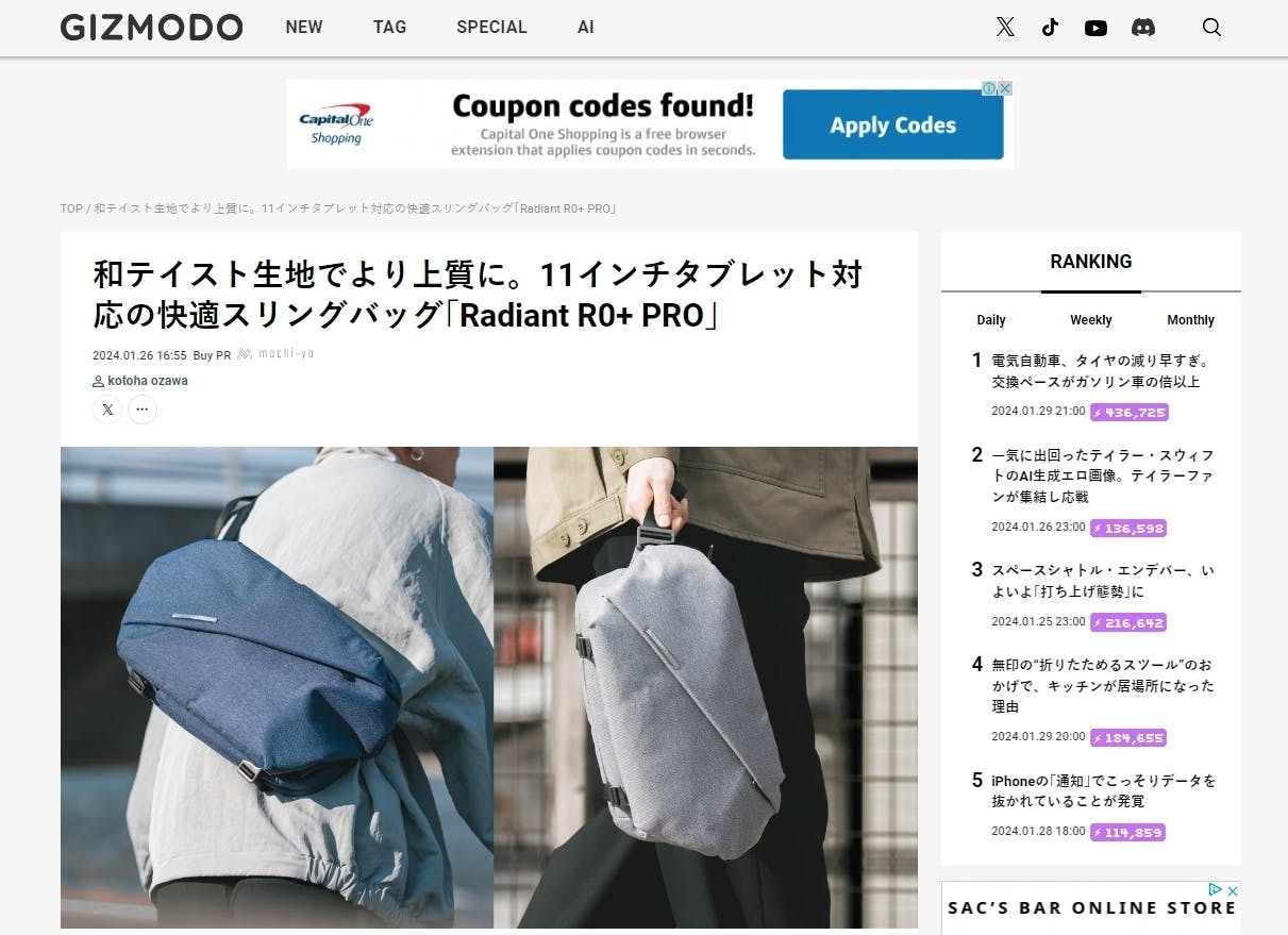 今回はギズモード・ジャパン様への掲載のご案内です。