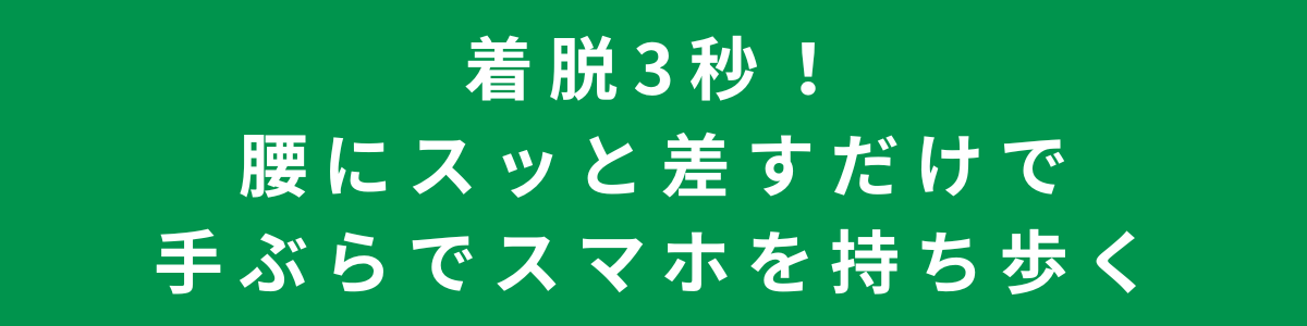 仕事中の駆け足や、自転車の乗り降り、ウォーキングや軽いジョギングなど「スマホだけ持っていきたいけど、移動しているときにスマホが落ちないか心配…」といったシーンにもピッタリ!