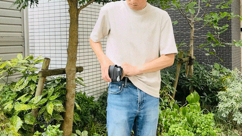 前(正面)や後ろ(背面)はもちろん、利き手に合わせて右でも左でも、取り付け位置を瞬時に変えることが可能です。