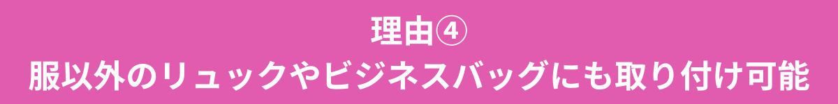 スーツはもちろん、チノパンやジーンズ、リュックのベルトにも取り付け可能。