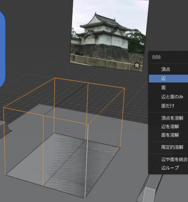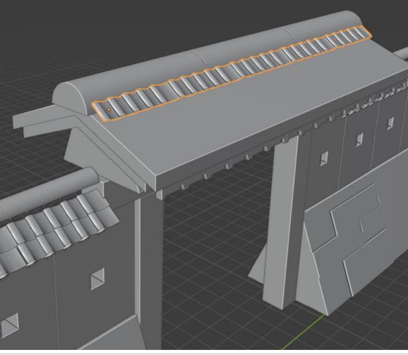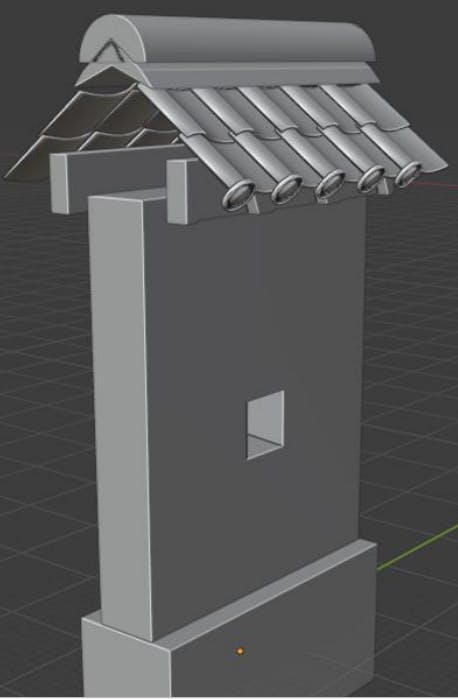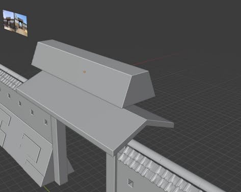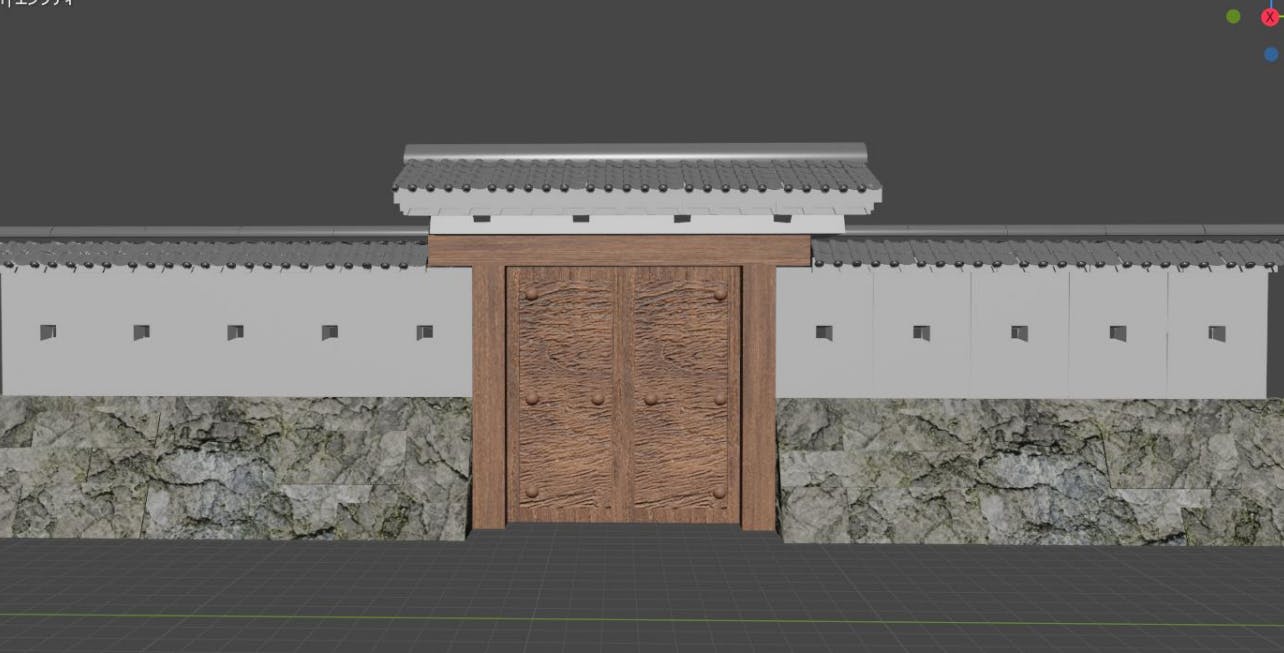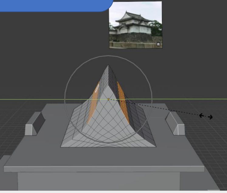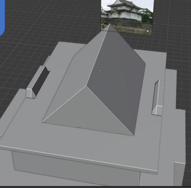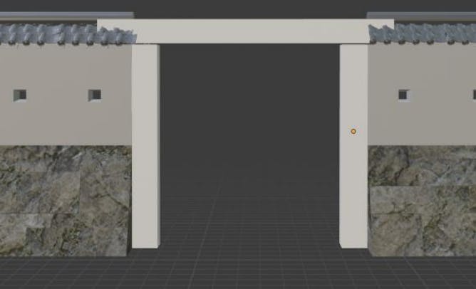 Blenderでは次のように城の縄張りを復元していきます。城門を作っていきます。(画像の著作権は私が持っています)