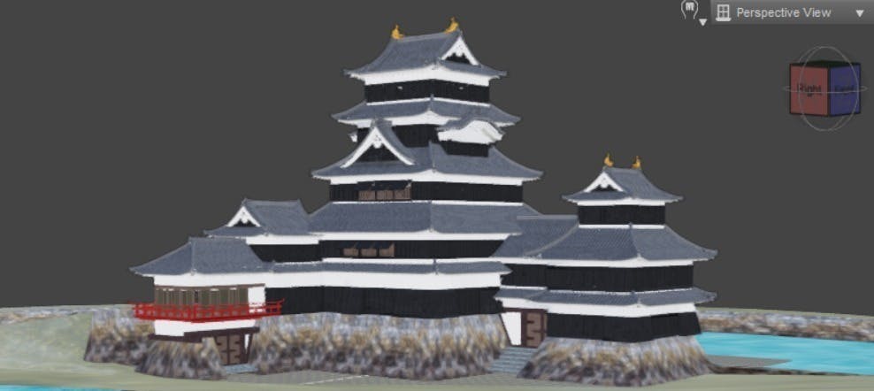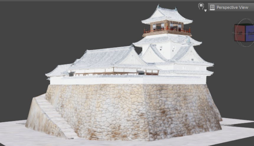 天守はこの画像のもので、この周りの縄張りをBlenderで再現していきます。
