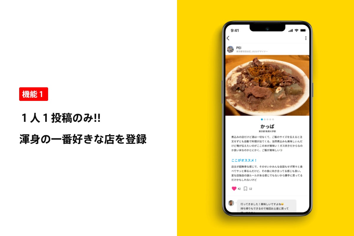 【機能1】1人1投稿のみ!渾身の一番好きな店を登録