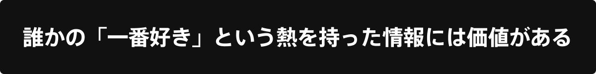 もちろんGoogle Mapや食べログ、SNSで店を調べることもあるんですが、なんとなく無機質な情報に感じてしまいます。僕はそれよりも誰かが人生で「一番好き」と熱弁してることに惹かれるし、実際にいきたくなるなと思ってます。