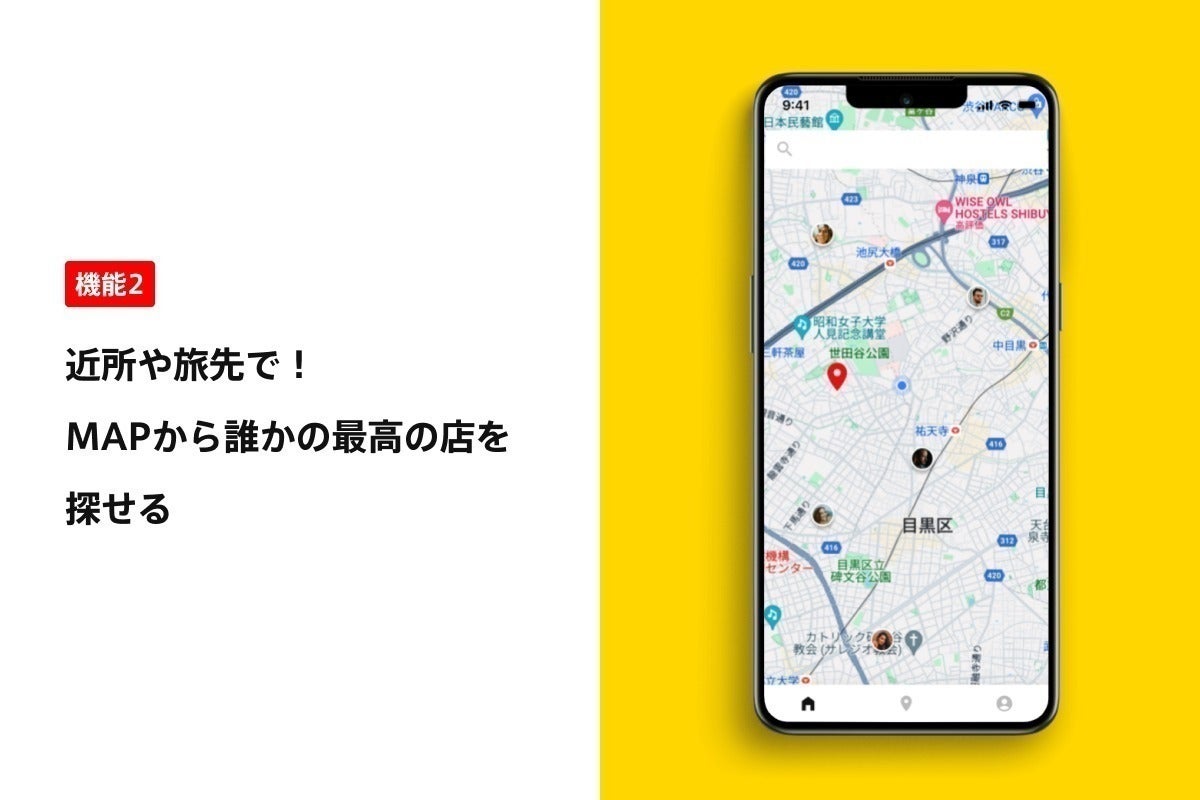 【機能2】近所や旅先で!MAPから誰かの最高の店を探せる
