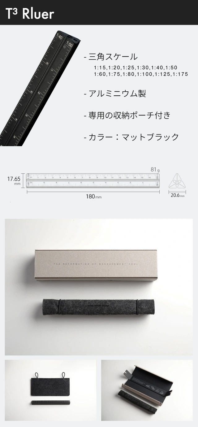幼い頃から文房具が好きだった担当者いちおしの「T³ Ruler」と「T Ruler」。今では文房具はただのツールではなく、仕事の質や気分をあげるアイテムや自己表現の一環としての役割を持っています。普段使うボールペンや付箋などは数多くの選択肢がありますが、専門性の高いプロのツールにおいては、「いつものもの」や「みんなが使っているもの」が多いのではないでしょうか。「T³ Ruler」と「T Ruler」は、いつも使う三角スケールや定規だからこそ、こだわりを持って選ぶのにぴったりの商品であると考えたため、みなさまにご紹介したく、本プロジェクトを実施いたしました。