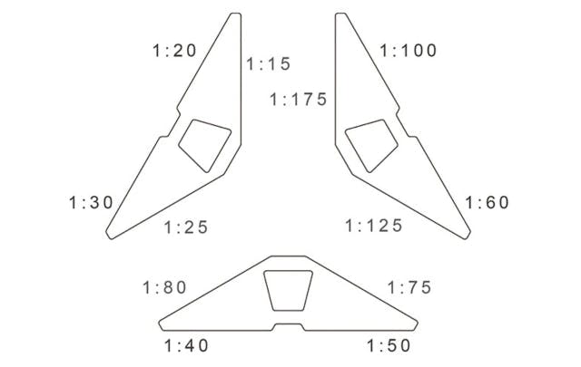 Yuan Design Studioを立ち上げたKenは、インテリアデザイナーだったので、スタジオの立ち上げ当初、最初に作りたいと思ったアイテムが三角スケールでした。しかし、当時の設計と製造の問題はそう簡単には解決できませんでした。過去5年間に数多くのバージョンを発売しましたが、そのたびに改良を重ねてきました。下の写真では、どれも単なる三角スケールに見えますが、細部に至るまで改良が加えられ、ついにT³の最終バージョンが完成しました。よくあるような三角スケールのように見えますが、それ以上のものです。