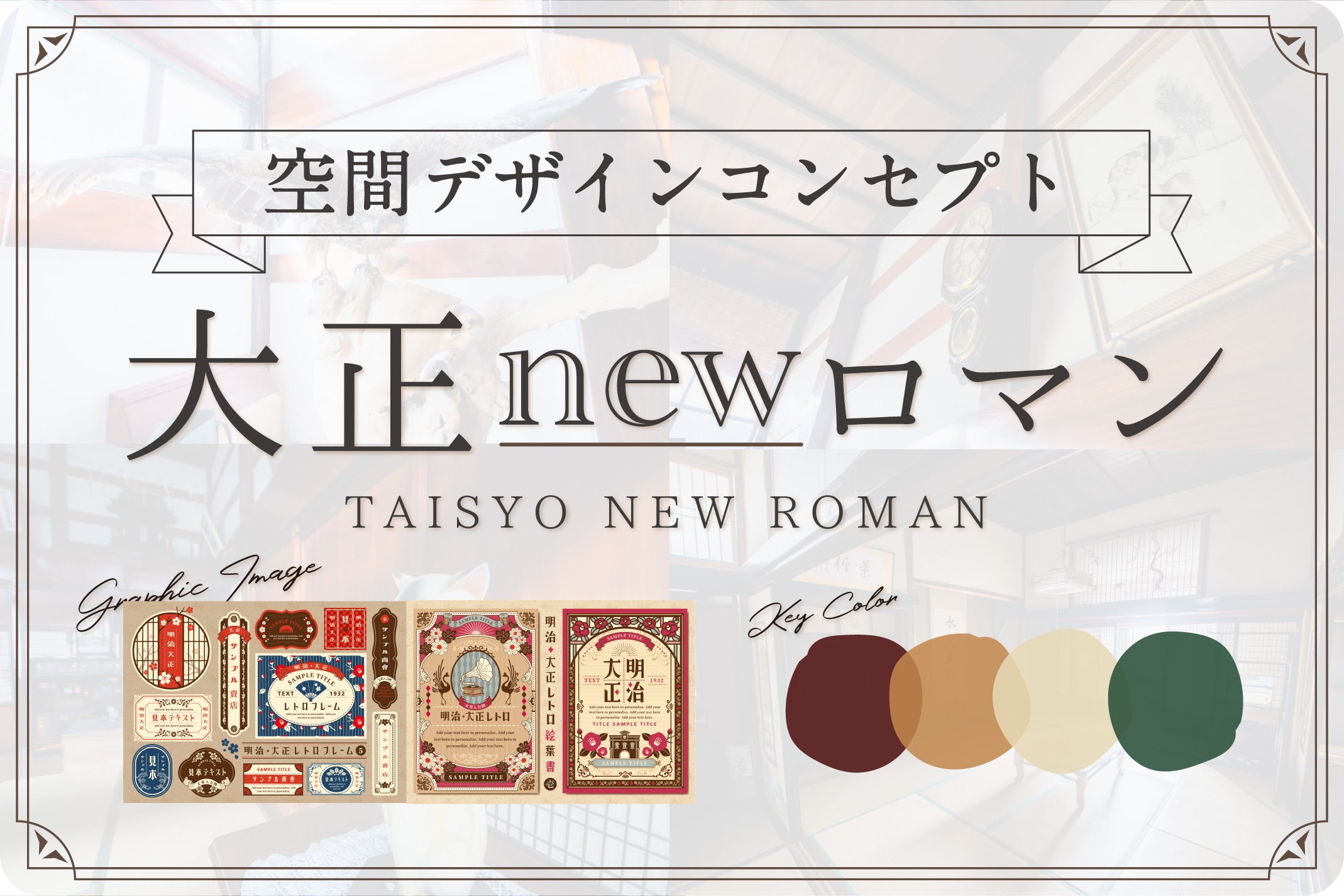 大正浪漫へタイムスリップ体験していただけるよう、空間デザインコンセプトは『大正newロマン』と設定しました。