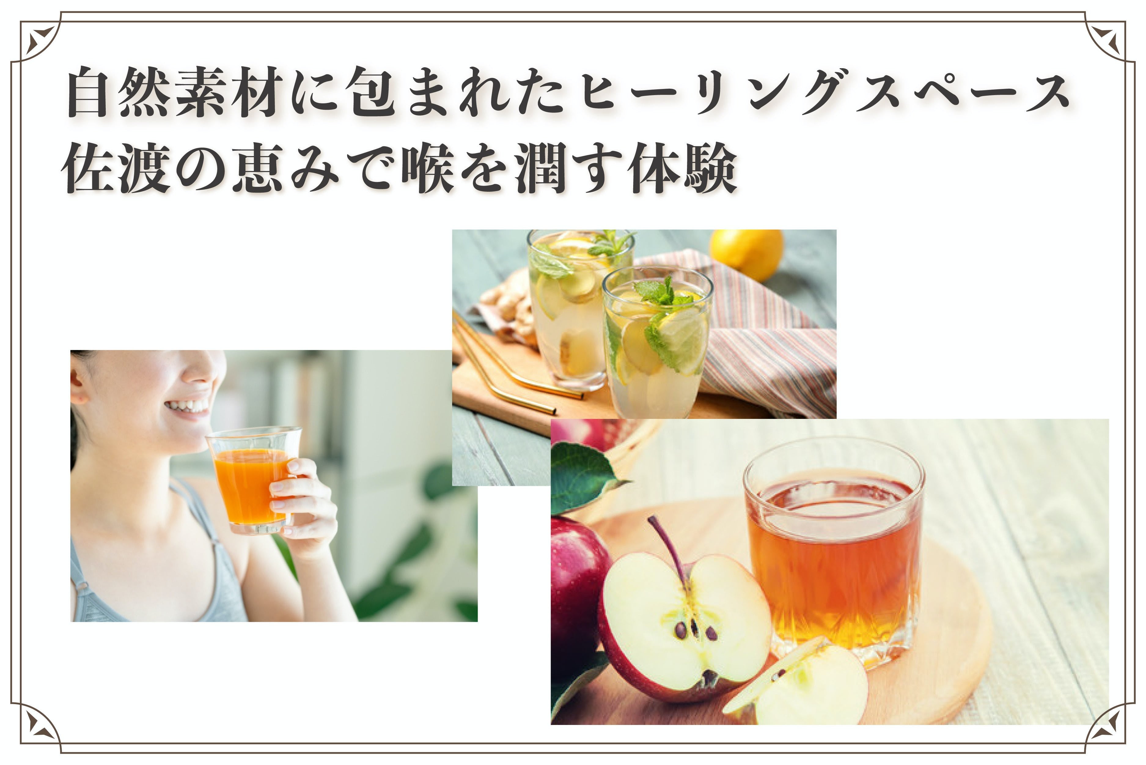 単純にサウナを体験できるだけではなく、以下のような佐渡を五感で体験していただけるような工夫を施したいと考えております。