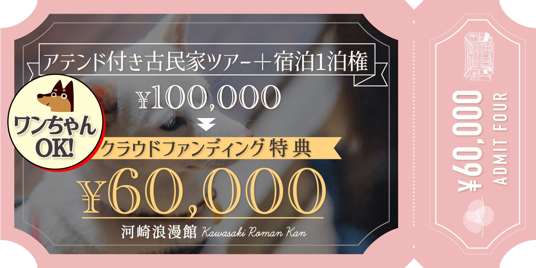 ●空き家地方創生メンバーのアテンドが付く古民家ツアーと河崎浪漫館の宿泊1泊分の権利です ※1