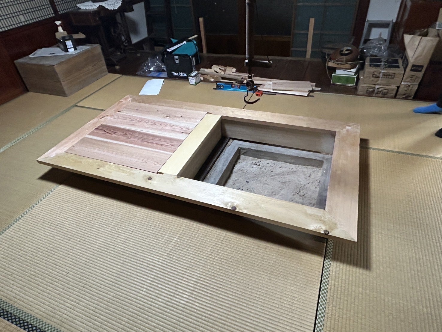 こんばんは、とうとう、囲炉裏用のテーブルができました。