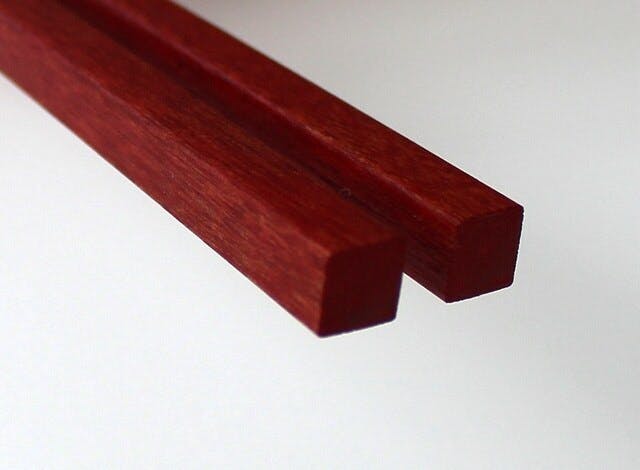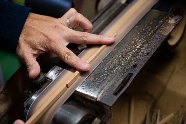 プラスチックや金属で実現するのは容易なことですが、温もりと口当たりを大切にし、木に拘りました。木は1本1本、比重に個体差があります。決して同じものはありません。そのため、重心の位置を決めるのは高度な技術と卓越した技を必要とします。原木から箸になるまで何十もの工程を経て、やっと1膳の箸が完成します。