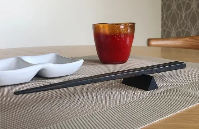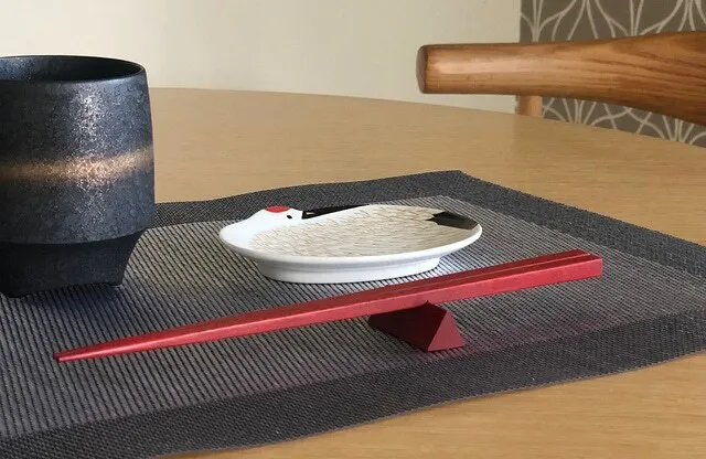 箸の重心を支えることで、宙に浮かぶようにテーブルに触れることなく置くことが出来ます。 テーブルに触れず衛生的で、手に取りやすく「箸を揃える美しい所作」を自然に誘導してくれます。