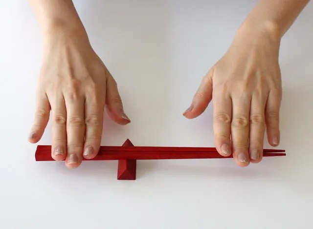 箸の重心にはV溝があります。箸置きの上に乗せるだけで簡単に設置できます。