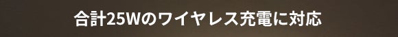 また、ワイヤレス充電は合計最大25W対応、3台のデバイスを同時に充電しても十分な電力を給電できます。