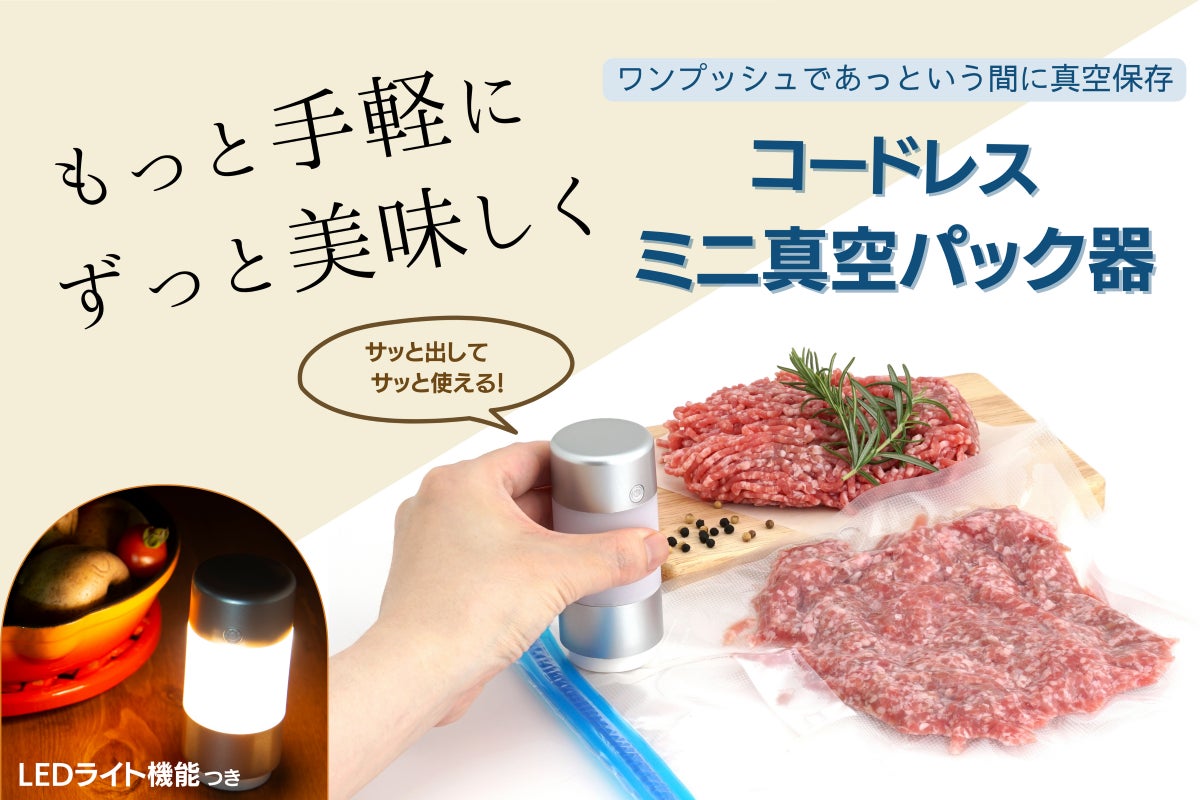 プロジェクトをご覧いただき、ありがとうございます!はじめまして。株式会社MONOGATARIです。「毎日の家事を少しでも楽にしたい」「物価が高騰しているから少しでも節約したい」これは誰でも一度は考えたことがある悩みではないでしょうか?そんな悩みを手っ取り早く解決するための「家事時短アイテム」。『コードレスミニ真空パック器』のプロジェクトがスタートしました!!わたしたちの真空パック器は何が他と違うのか、どんな便利さがあるのかなど余すところなくご紹介しています。活動報告でもお伝えしていきますので、ぜひ「お気に入り登録」をお願いします!そして、多くの方に、真空パック器の便利さ、手軽さを体験していただきたいです!プロジェクト最後までどうぞよろしくお願いいたします!MONOGATARI