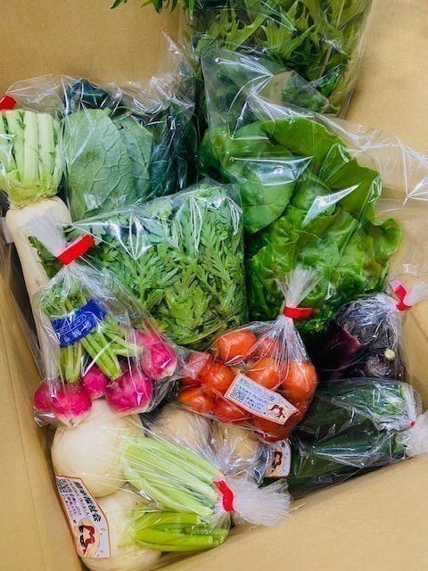 金額に応じてお野菜BOXをお届けいたします。季節の野菜になるのでその時期で中身は変わってきますが、一人一人に思いを込めておいしい野菜をお届けいたします。