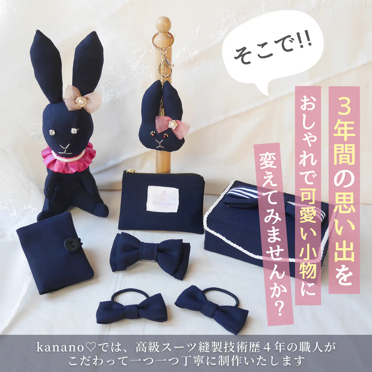 卒業後、クローゼットやタンスに眠ったままの大切な制服を素敵に活用し、思い出を形に残すことができる「制服リメイク」をします。