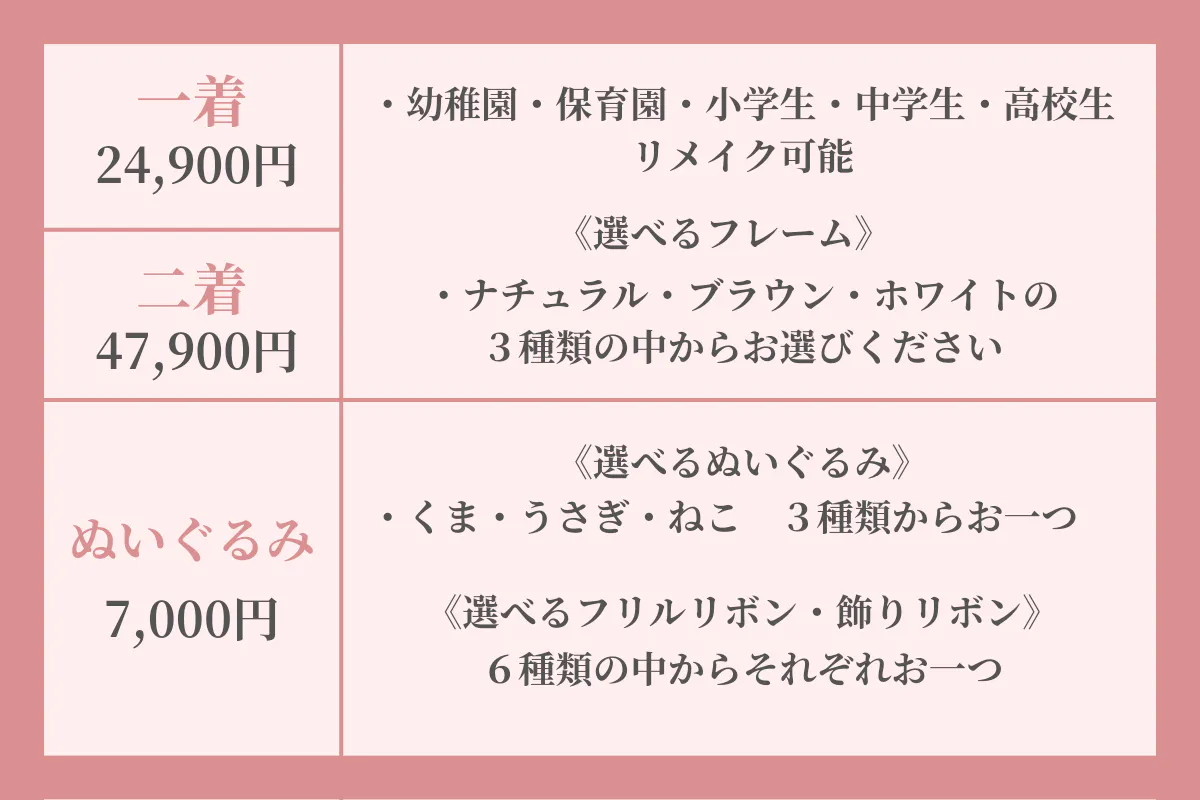 環境問題を減らしつつ、お客様の大切な想い出に寄り添っていきたい。そんな想いから2023年より制服リメイクをスタート!