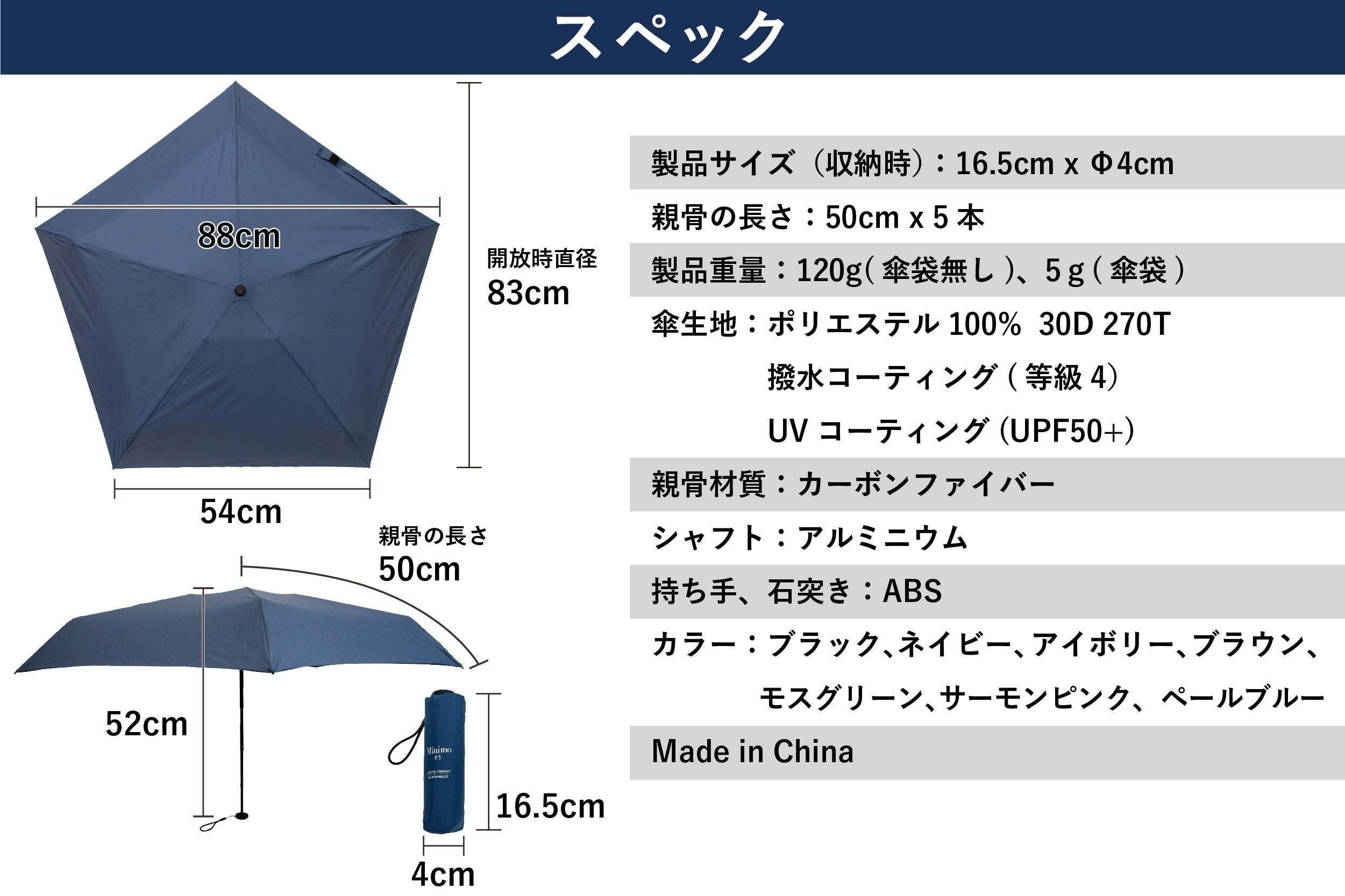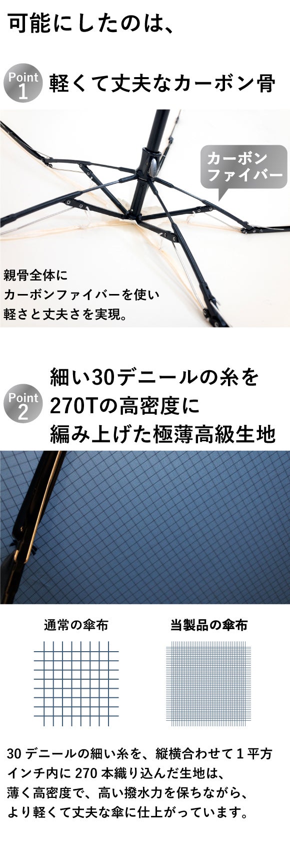 この3つの数値を同時に満たす傘を、日本市場で私は知りません。※2023年10月当社調べ