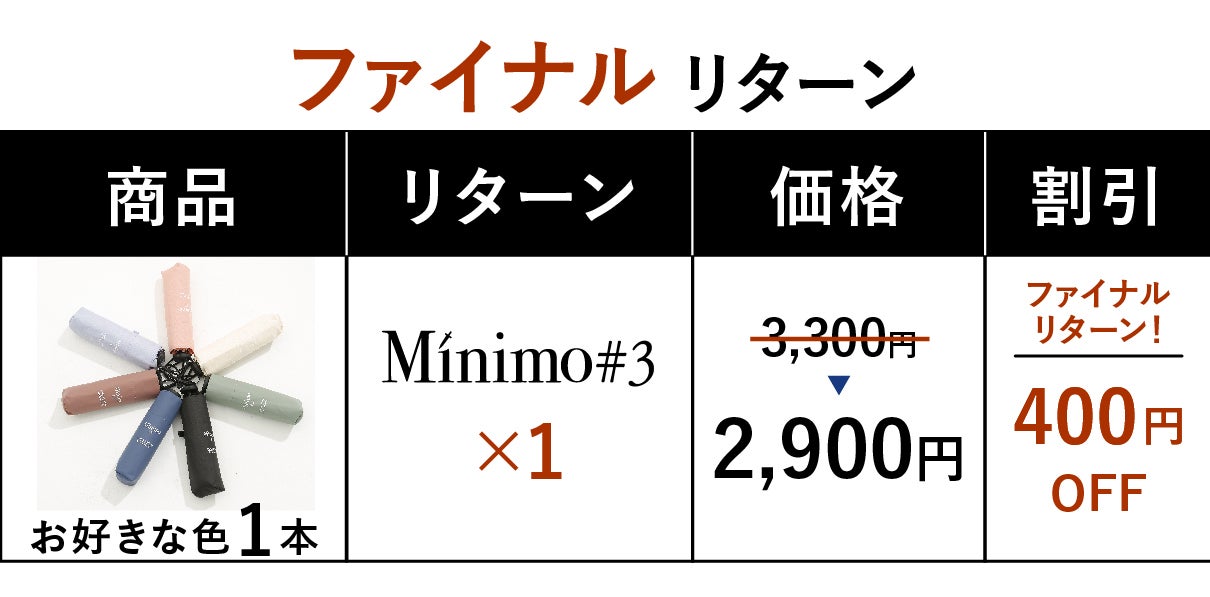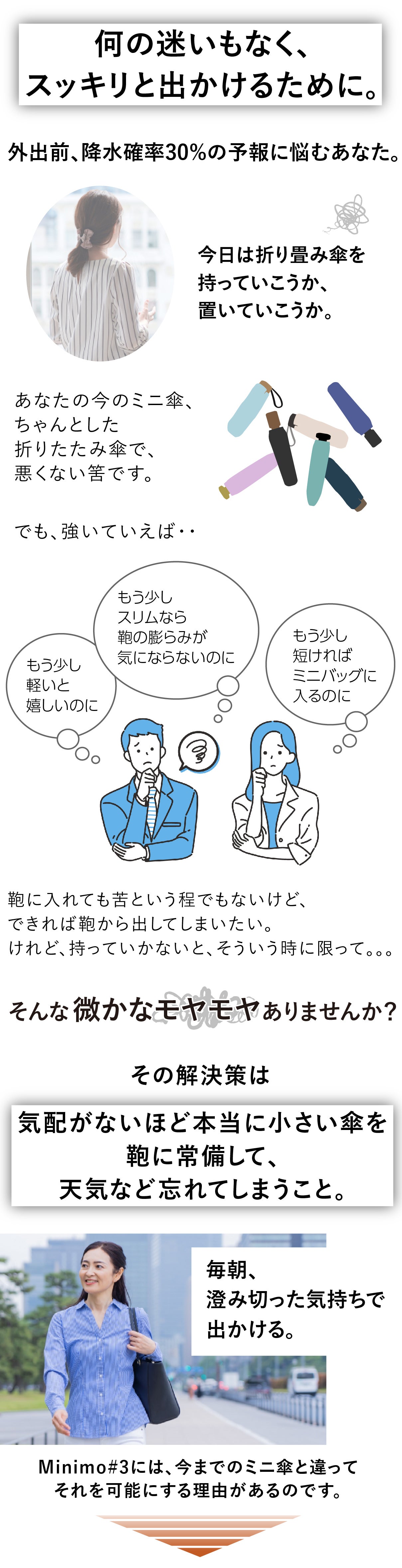 是非、このMinimoを鞄に常備して、天候のことなど何も気にせずに、すっきりとした気持ちでお出かけください。