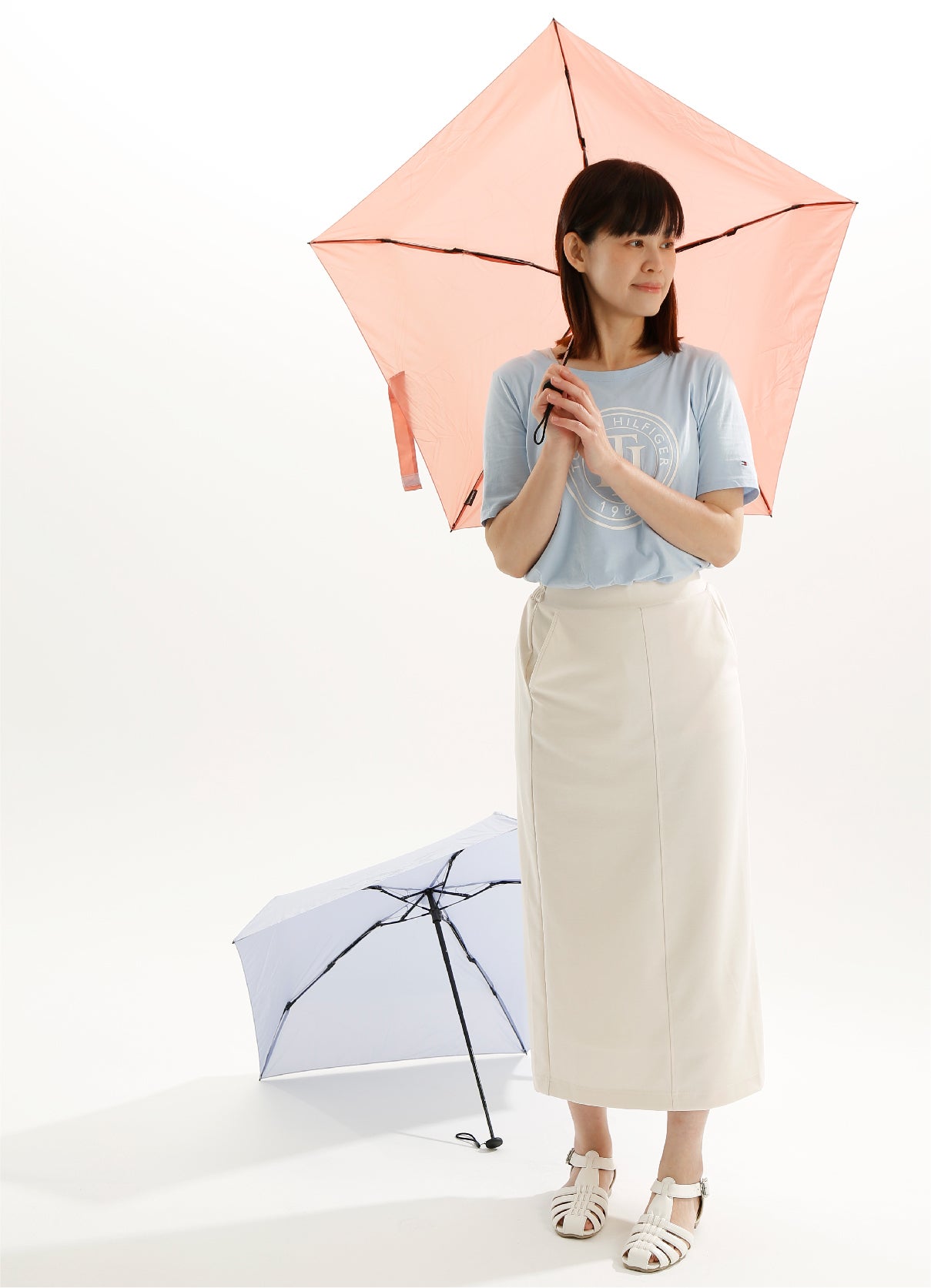 率直にいうと、Minimo#3は朝から大雨が降っているときの使用には適しておりません。そのかわり、時に日傘として使いながらも、通常はお守り傘としてカバンに入れておき、いざという時の雨に対応する。その時まで如何に存在感を消せるかという点を追求し、小さく、軽くすることだけを目指したのです。