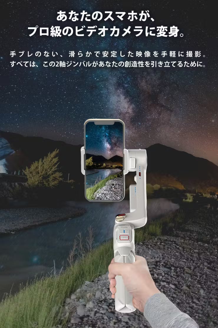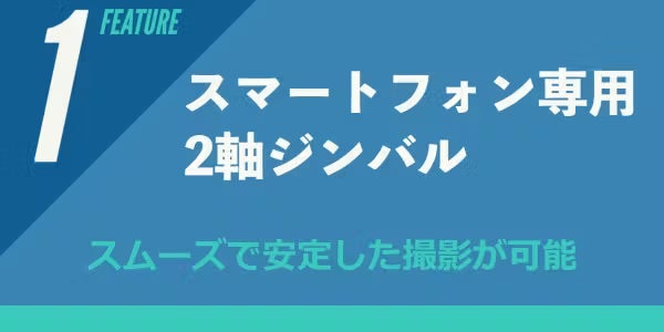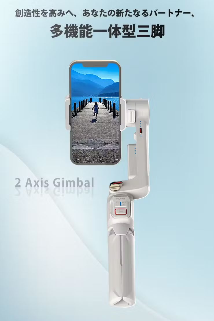 スマートフォン専用2軸ジンバル:スムーズで安定した撮影が可能。大半のスマホモデルと互換性があります。