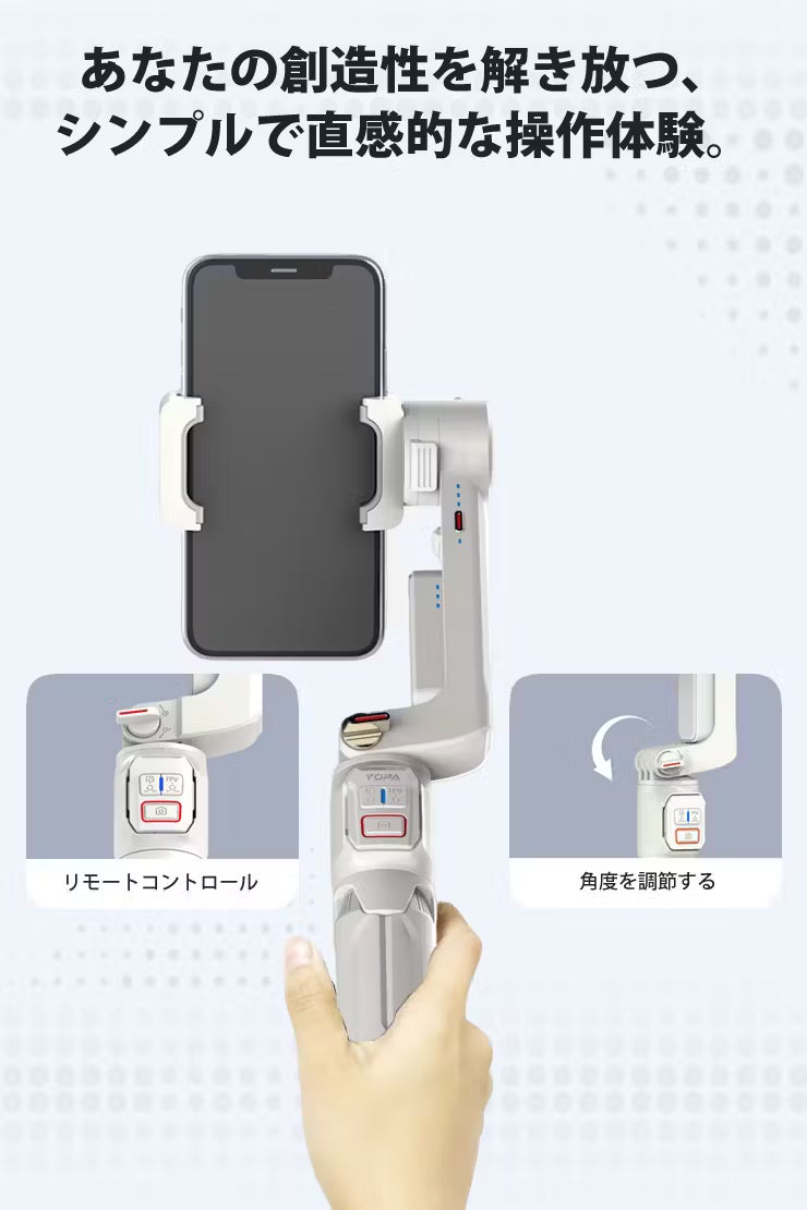 使い方は簡単。スマホをジンバルに取り付け、必要に応じてLEDライトを設置します。そしてリモートコントロールを使って撮影を開始するだけ。あなたのスマホが、ただの通信ツールから、あなたの創造性を引き立てるパワフルな映像制作ツールに変わります。