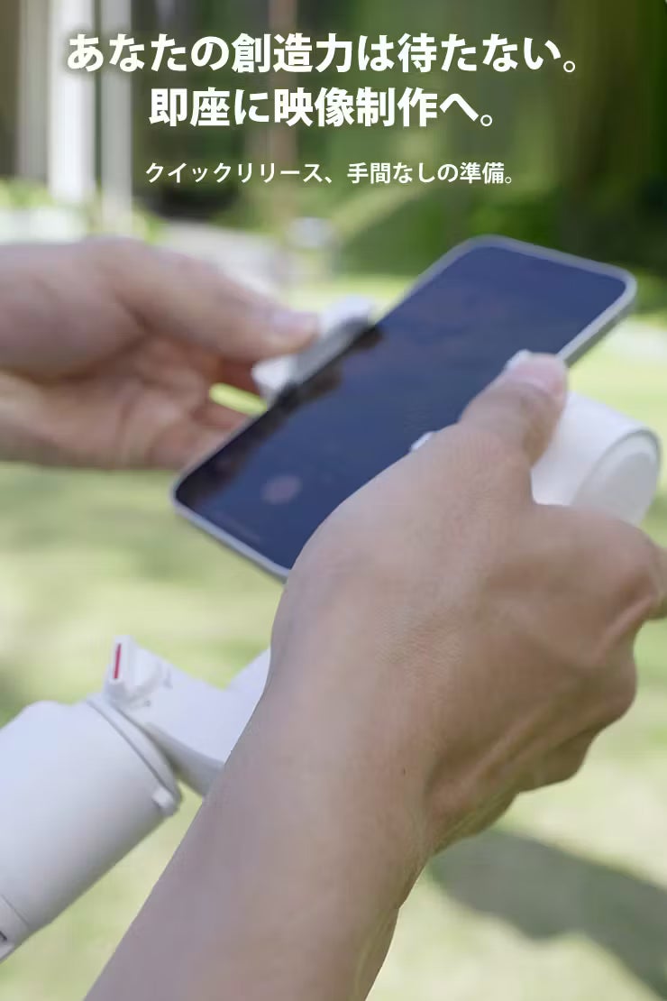 初めて手に取ったその日、コンパクトなそのデザインに驚きました。かつて私が使っていたジンバルよりもずっと軽く、持ち歩きも苦になりません。急な撮影の呼び出しにもすぐに対応できるよう、私のバックには常にこのジンバルが入っています。