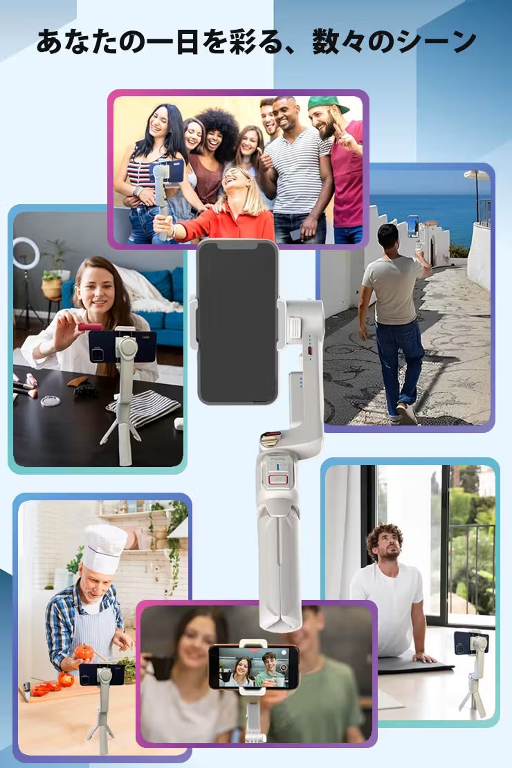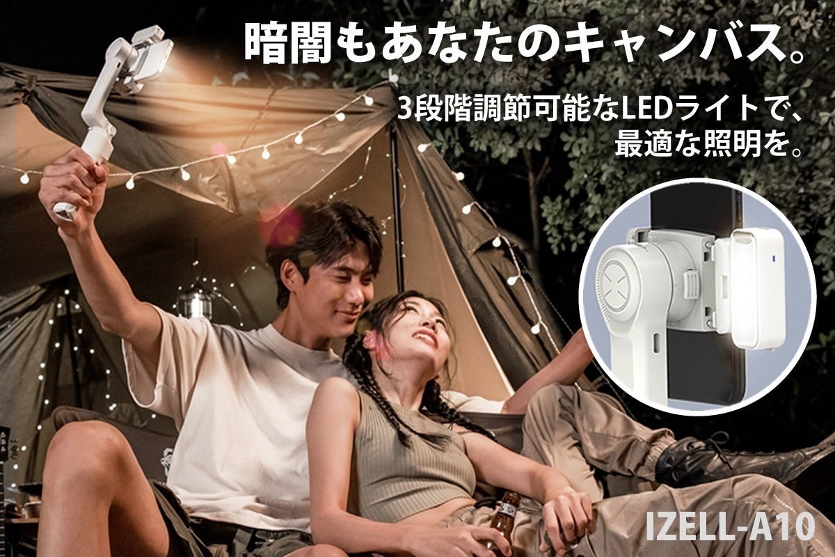 旅行に行く時、人生のイベントで特別な瞬間を捉える時、あるいはビジネスで映像を作りたい時、スマートフォンだけでは物足りないと感じる事はありませんか?私たちが開発したこの2軸スマホジンバルIZELL-A10ならそんな物足りなさを一気に解消し、スタジオで撮影したようなワンランク上の映像を提供します。