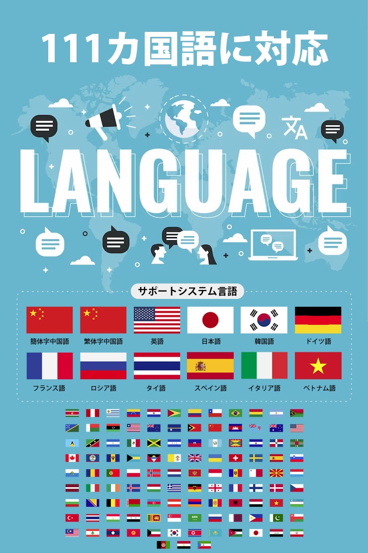 多言語対応 : 111カ国語に対応し、さまざまな言語間でのコミュニケーションを円滑に行うことができます。言語の壁を取り払い、国際的な交流を楽しむことができます。