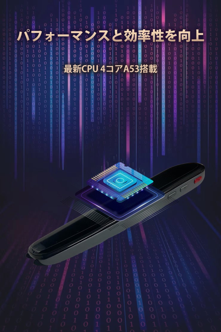 高性能CPU : 4コアA53の高性能CPUを搭載しており、スムーズな翻訳処理と高速なレスポンスを実現します。迅速かつ正確な翻訳を提供し、リアルタイムの会話やコミュニケーションにおいても優れたパフォーマンスを発揮します。