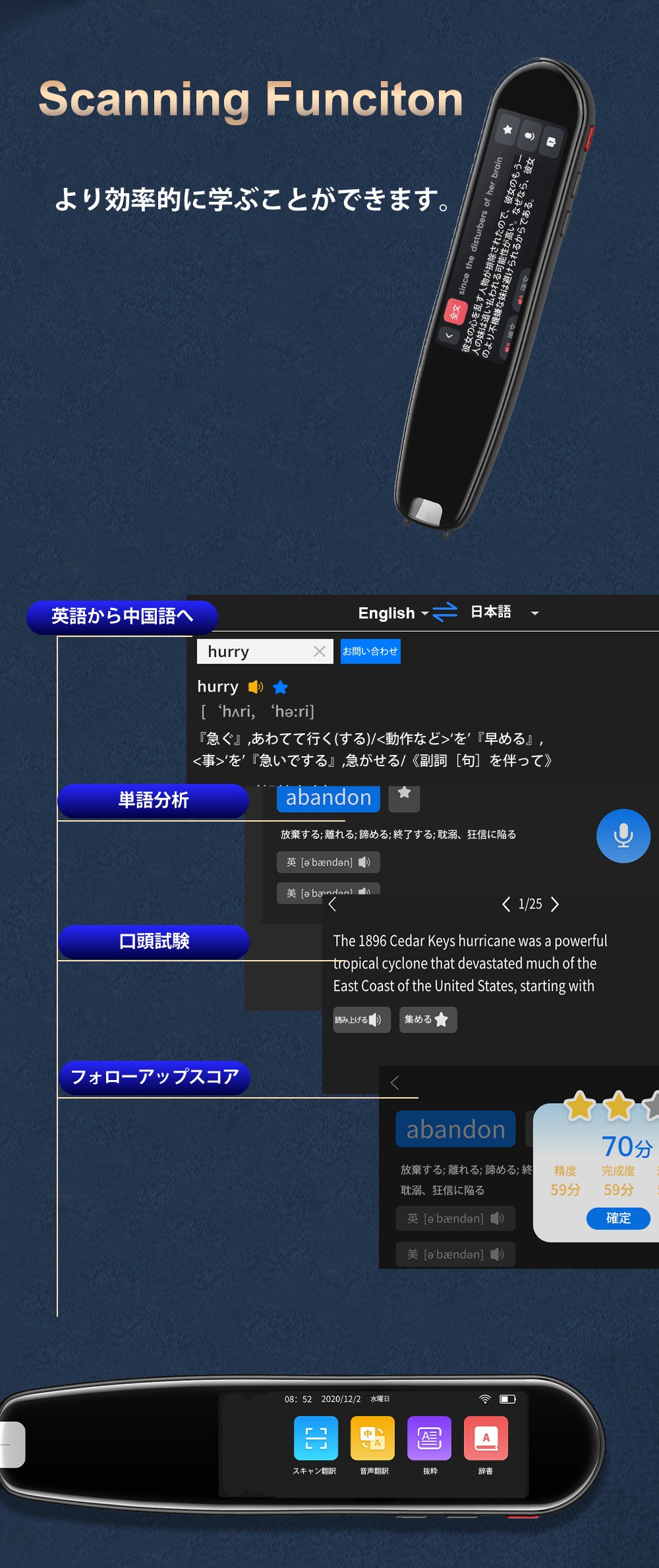 - ・電子辞書搭載 : 単語やフレーズの検索ができる