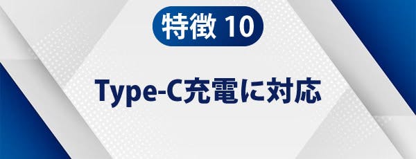 - ・Type-C充電 : 便利なType-Cポートで充電できる
