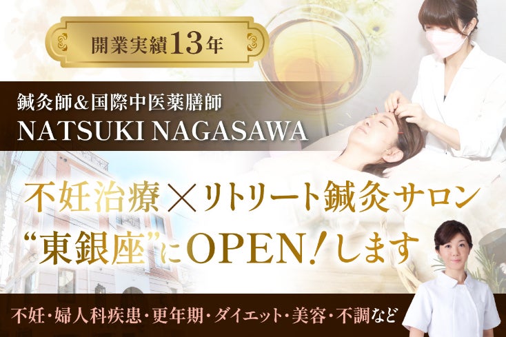 私は、千葉県と都内(東銀座)で鍼灸院を運営しております、40代女性 永澤夏樹(ながさわなつき)と申します。