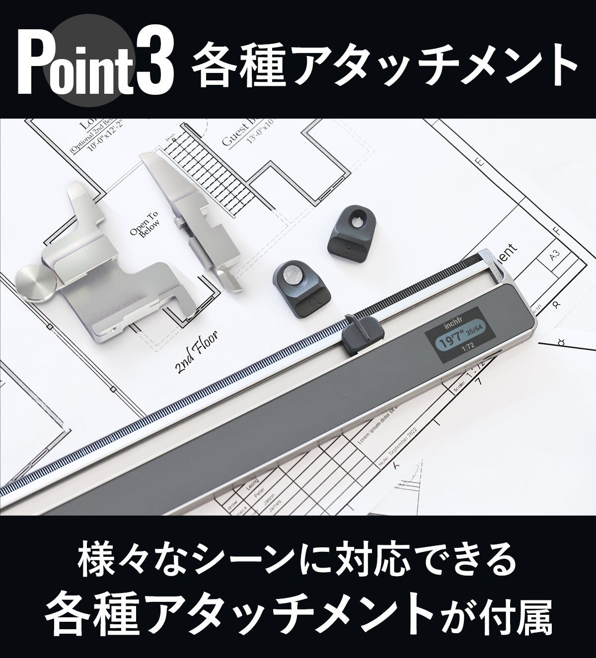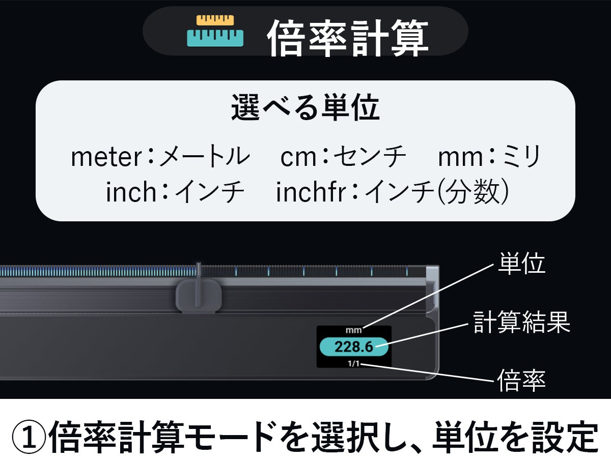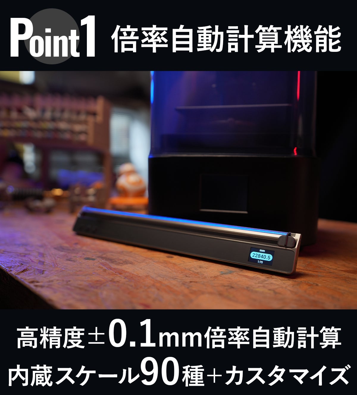 内蔵スケールを選択するだけで簡単に倍率計算でき、更にカスタマイズでスケールを作成することも可能!