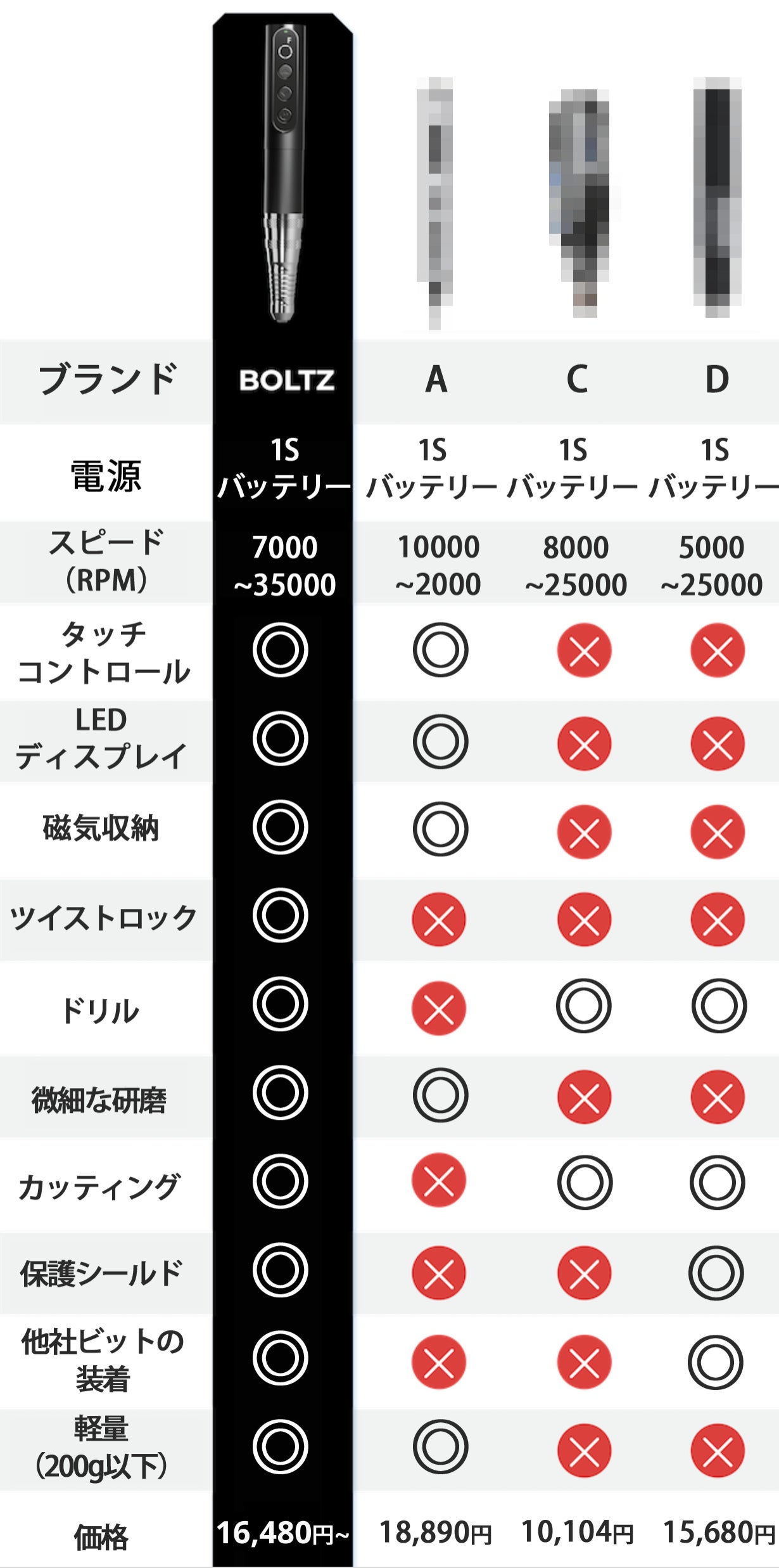 BOLTZがあれば「切る」「ドリルする」「彫る」「研磨する」がより簡単かつ快適なものになるでしょう!