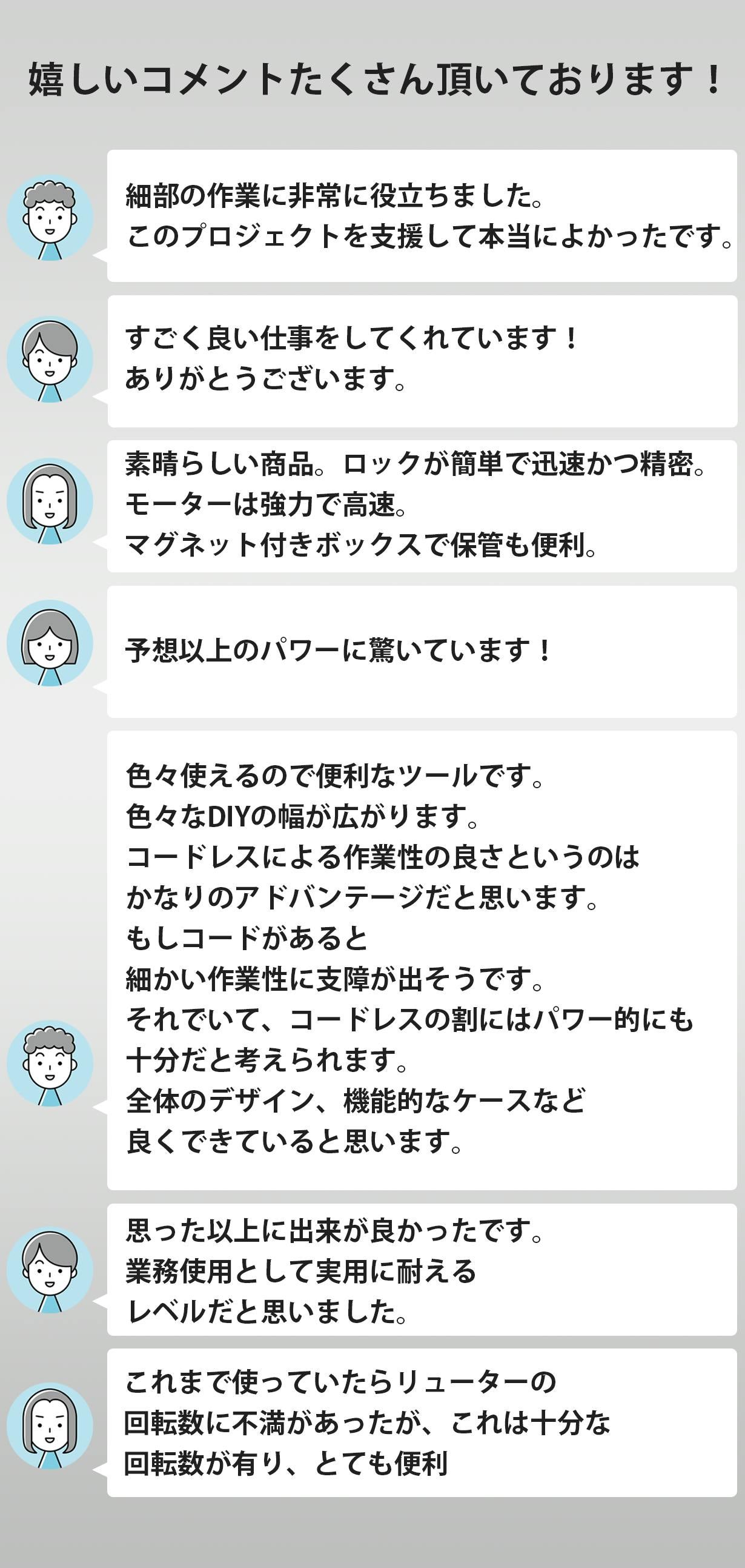 趣味でDIYをしているかたからプロ並みの繊細な加工を施したい方まで、満足して頂けるのではないか!そう思っています。