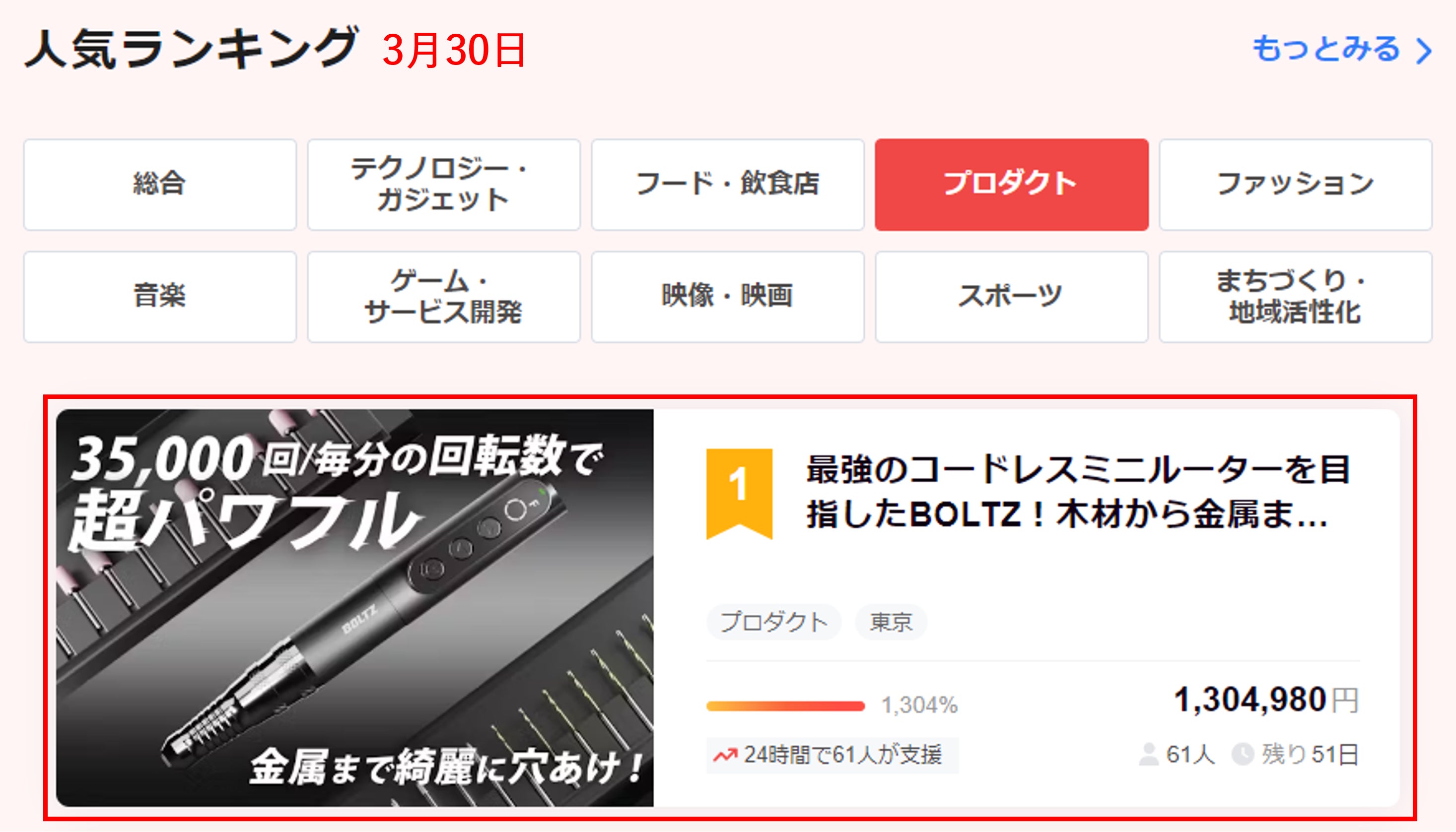また本日のCAMPFIREランキングプロダクト部門で1位!総合で7位に入賞することが出来ました!