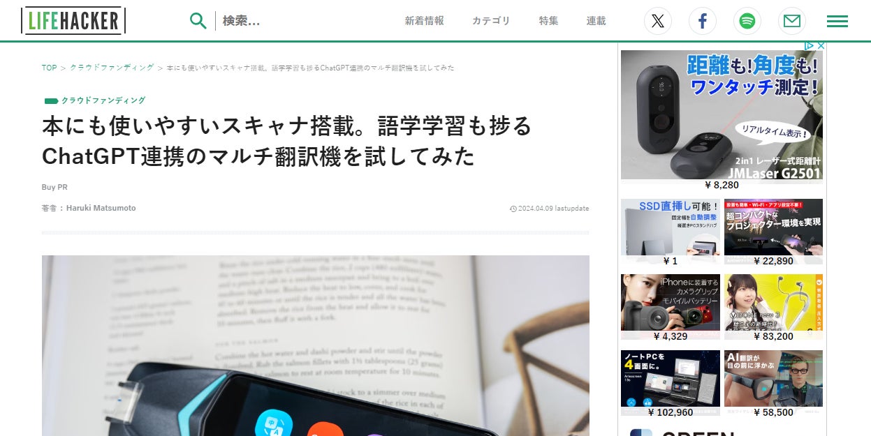 皆様、こんばんは !Brightチームです。お世話になっております。4月9日 、LifehackerでNEWYES ChatGPT搭載翻訳ペンを紹介して頂きました!話題:本にも使いやすいスキャナ搭載。語学学習も捗るChatGPT連携のマルチ翻訳機を試してみた 是非下記のリンクからアクセスしてみてください。https://www.lifehacker.jp/article/machi-ya-review-chatgptpen-729829/【レビューの一部抜粋】〈 こちらが「ChatGPT搭載翻訳ペン」。名前にはペンと付いていますが、どちらかと言えばスマホに近い感覚ですね。ディスプレイは視認性も高く、タッチパネルで動作も快適。翻訳モードは複数あり、電子辞書なども搭載しているので語学の勉強にも便利ですね。 〉ご興味のある方、ぜひ支援お願い致します。https://camp-fire.jp/projects/view/729829Brightチームは、当プロジェクトをもっと多くの方に知っていただきたいと考えております。よかったら、FacebookやTwitter等のSNSでのシェア・拡散をお願い致します。#newyes #brightdiyどうぞよろしくお願い致します。Brightチーム